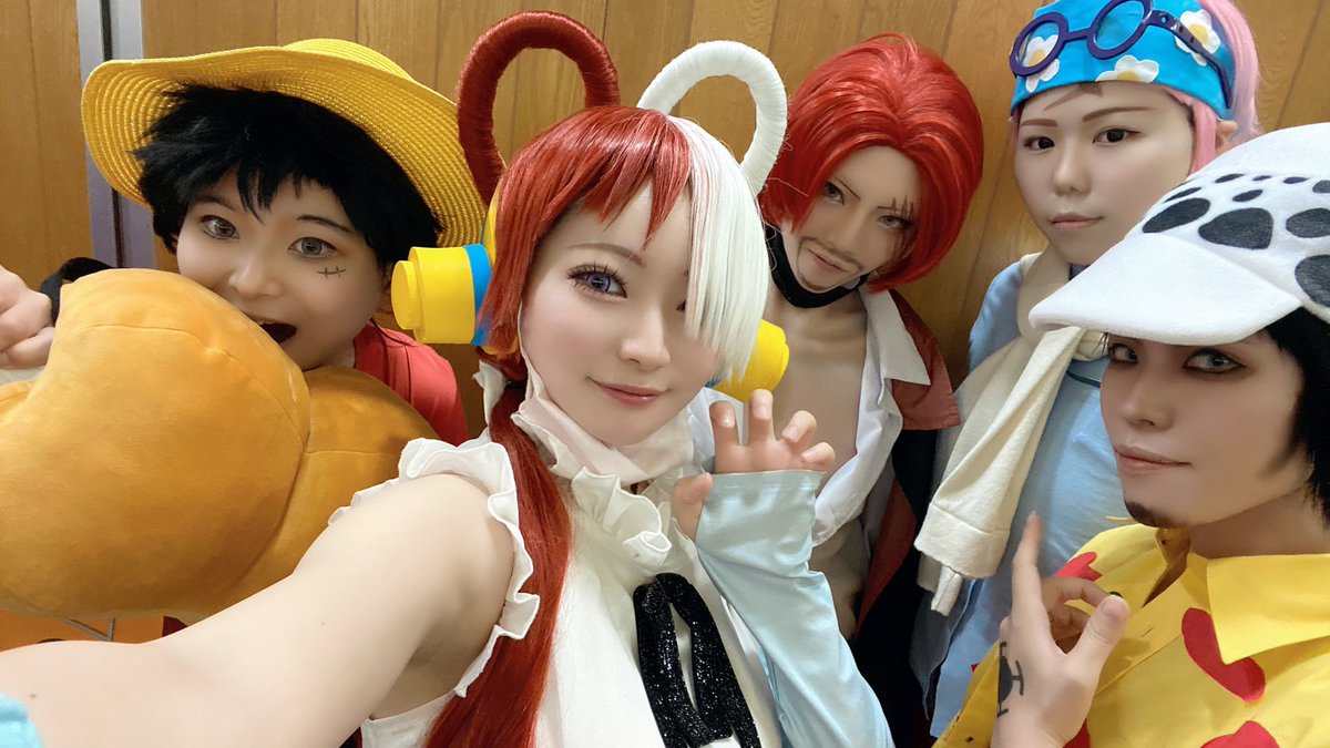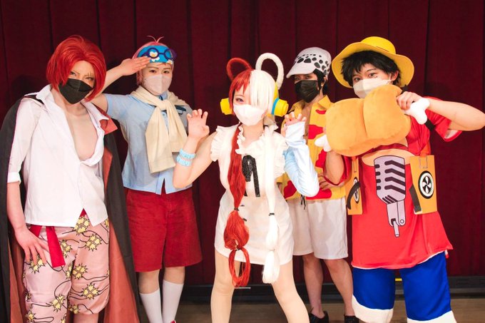 cosplay op🏴☠️👒🍶 ⚠︎キャラ崩壊 おどつなステージ中で👒にイジられるシャンくす🍶ww 4枚目「わーい!」「ん?」って感じで好きだな✨ 楽しいステージをありがとうございました!! 📸@marine223_Photo 様 #おどつなvol32 #ふぁんまれ