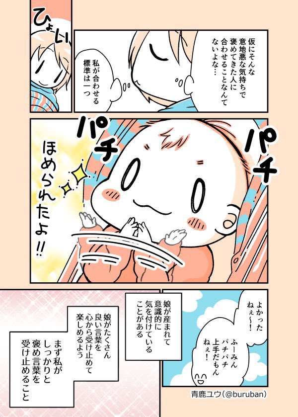#子育てっていいな #ふうふう子育て 夫婦の話ではないんだけど、子育てするようになって自分にこういった変化が生まれた 子育てって、自分自身を振り返ったり切り替えるきっかけにもなるよなぁて思う 人から言われる遍く褒めに「ありがとうございます」て言えるようになって心がとてもラクだ✨ twitter.com/buruban/status…