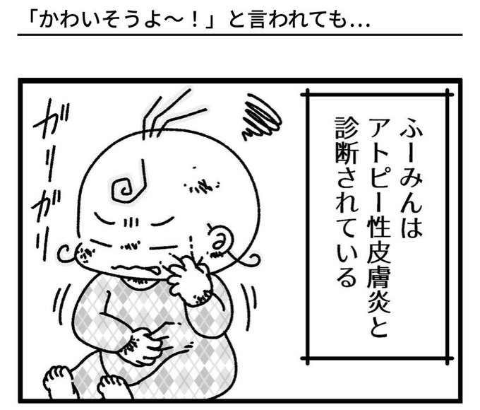 【1/2】#ふうふう子育て 45話 ふーみんはアトピーと診断されていて、毎日のケアはとても大変。でも、診断前は別のしんどさがあり一時は外に出るのも通院も嫌で大変でした なぜ母親はカジュアルに叱責されやすいんでしょうねぇ… #子どもの不調時に言われてつらかったこと woman.mynavi.jp/kosodate/artic…