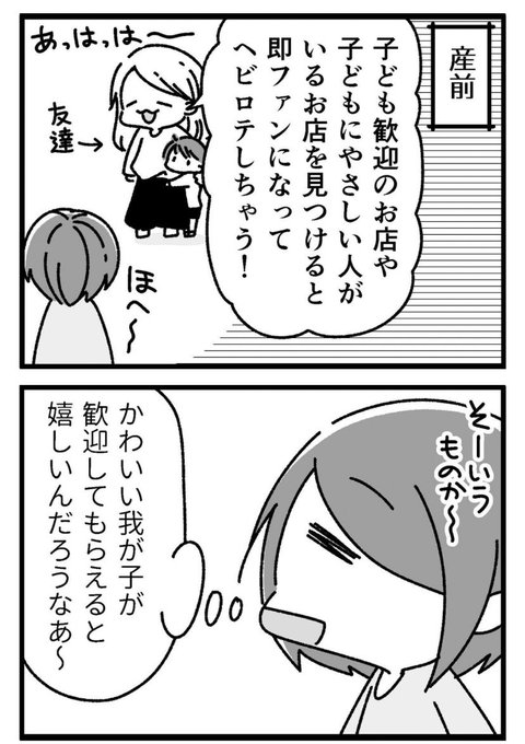 【1/2】#ふうふう子育て 69話 出産前、子どものいる友達に「子ども歓迎のお店のファンになる!」と聞いて 漠然と「かわいい我が子を歓迎してくれたら嬉しいんだろうな〜」と思っていました しかし、産後はそれだけじゃないことに気づいて…! #子連れお出かけのピンチ woman.mynavi.jp/kosodate/artic…