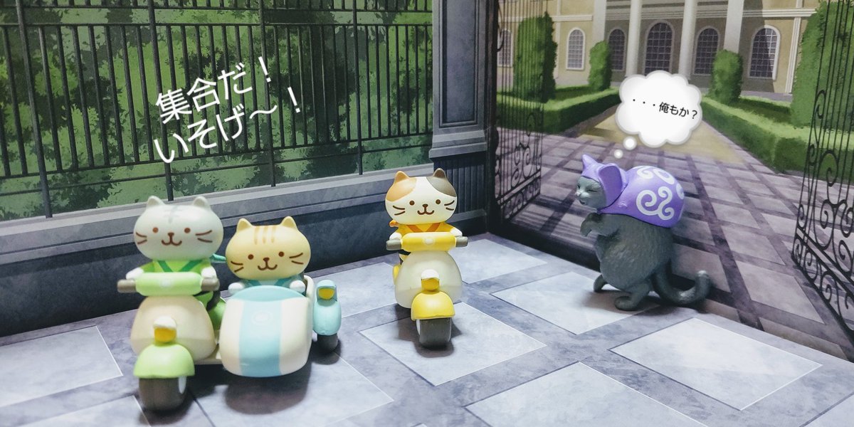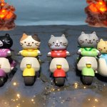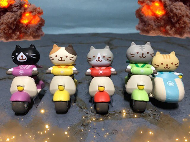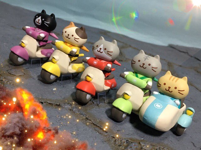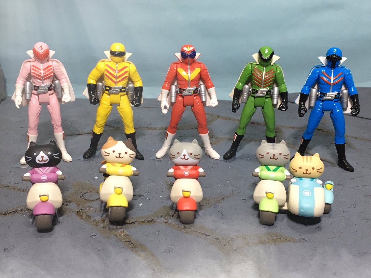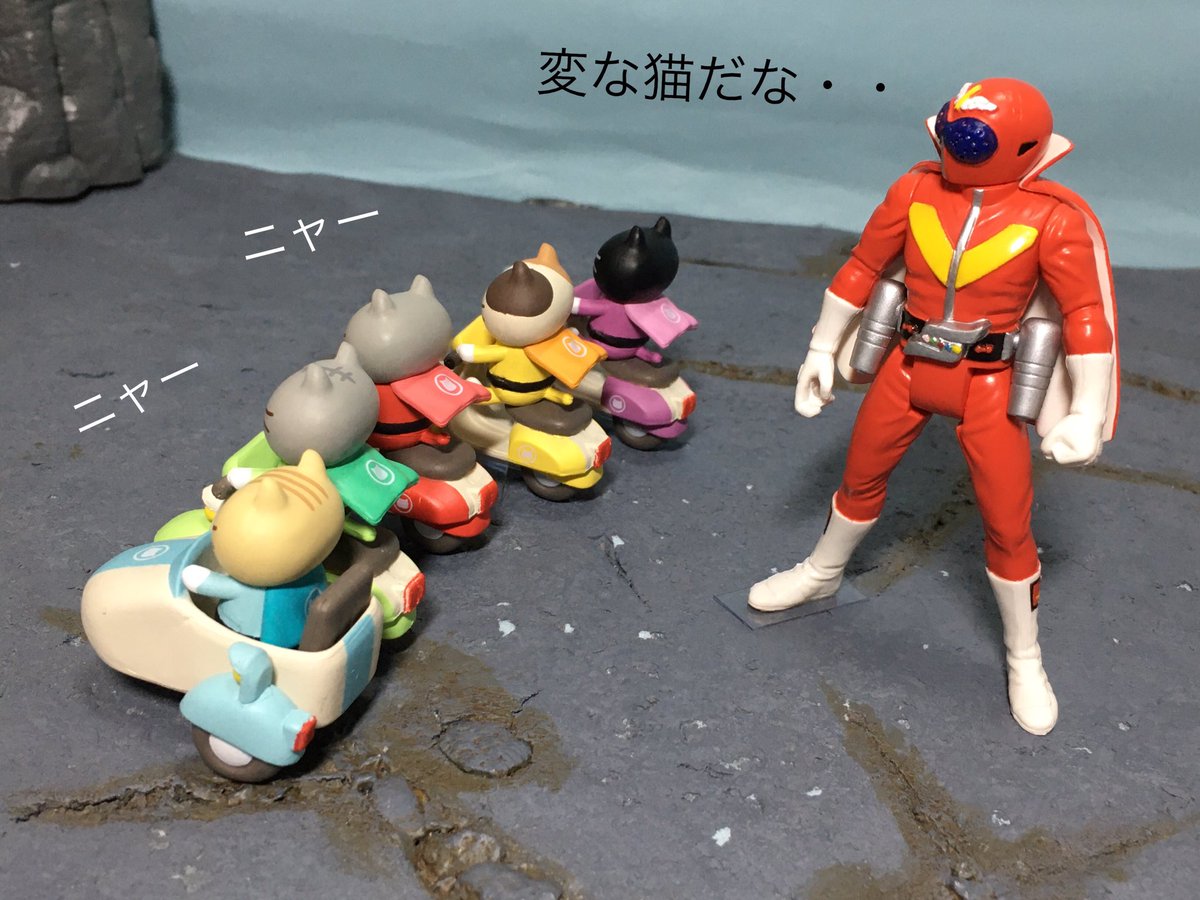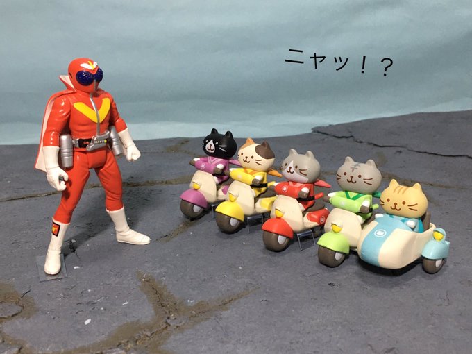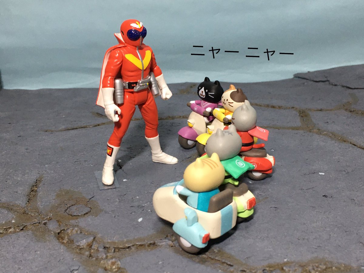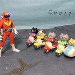 #夜のフィギュア撮影会 お題『昔』 ふくふく戦隊ニャンレンジャー!出動!←サイドマシンに乗ってるのが昔の戦隊ヒーローっぽい😄 #ふくふくにゃんこ #ふくふくにゃんこ集会 #ニャンレンジャー #ニャンレンジャー2 #ハッチ #ミケランジェロ #クロ助 #サバ太 #チャチャ丸 #オモ写