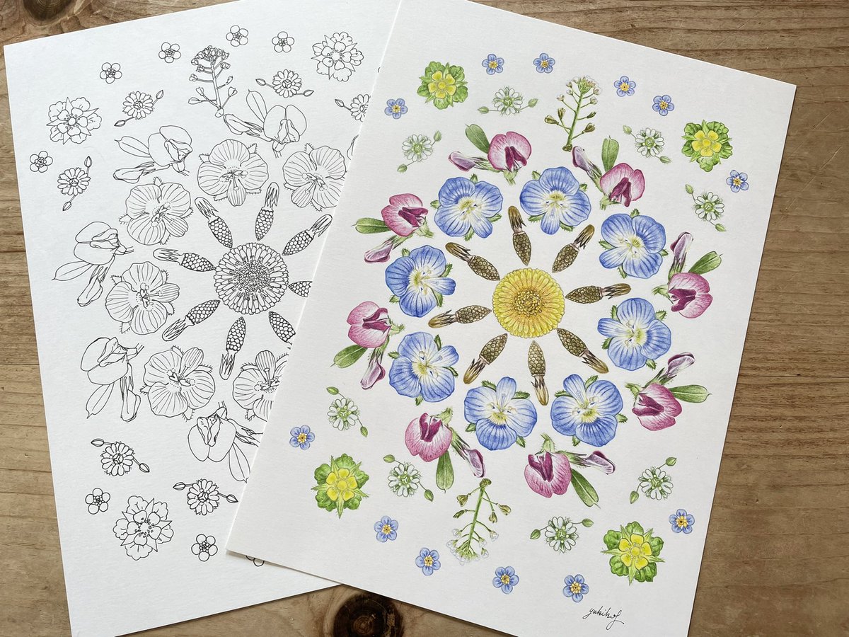 #みんなで楽しむTwitter展覧会 春の塗り絵を作りました。 #ふじのくに地球環境史ミュージアム にて配布しています。 #絵描きさんと繋がりたい #イラスト好きさんとつながりたい #色鉛筆画 #塗り絵