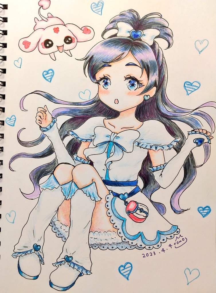 過去落書き絵~(=゚ω゚)ノウニャンコ♪ これって配信しながら描いてんだなぁ 今日中に千束ちゃん塗り終わるぞぉ~ ……終わるといいなぁ(ノシ'ω')ノシッポバンバン! #ふたりはプリキュア #雪城ほのか #絵描きさんと繋がりたい