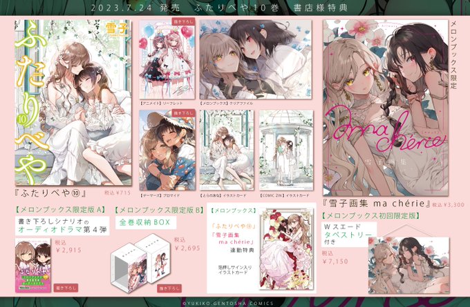 7/24発売『ふたりべや⑩』&『雪子画集 ma chérie』の書店様特典まとめ! 詳しい内容と通販リンク、あとふたりべや完結した感想などをnoteにまとめました #ふたりべや ⏩note.com/aoiyukiko/n/n8…
