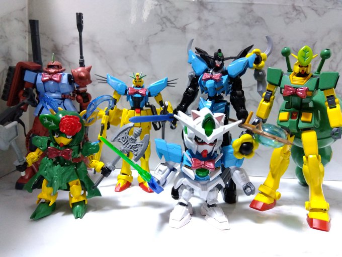 ガンプラでふなっしー一族大集合 #ガンプラの画像貼るとRTされると聞いて #ガンプラはどんな自由な発想で作ってもいいんだ #ふなっしー #ふなごろー #ふにゃっしー #ペアンヌ #ブッシャアアズナブル