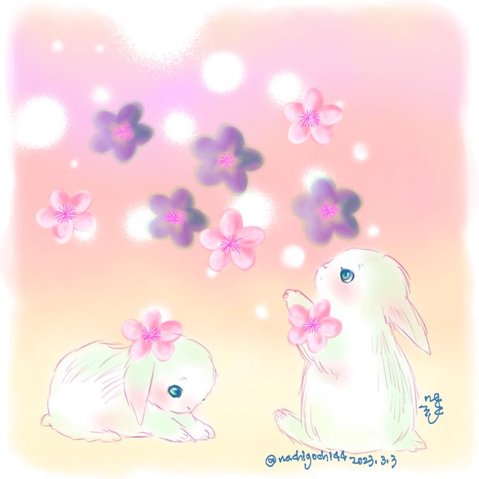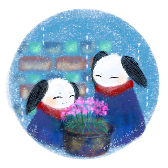 🐇🐇🐇 新しい年の1日目が、もうすぐ終わります。 どうかどうか、希望の兆しがみえる1年になりますように。 今年も、どうぞよろしくお願いします。 #新年のご挨拶 #HappyNewYear2023 #みんなで楽しむTwitter展覧会 #うさぎ #100日チャレンジ #ふわふわな生き物 Day 1./100