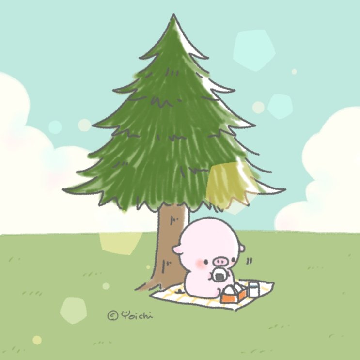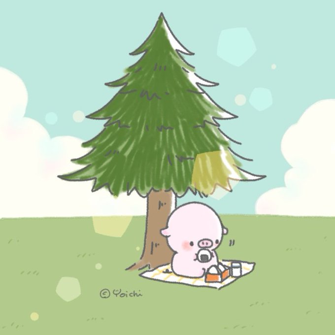 今日が素敵な1日になりますよう🌼 ささやかな喜びをあなたにっていう気持ちでタコさんウインナーをお弁当につめるよ✨ #ゆるいイラスト #イラスト #illustration #お絵かき #動物 #ぶた #お弁当 #タコさんウインナー