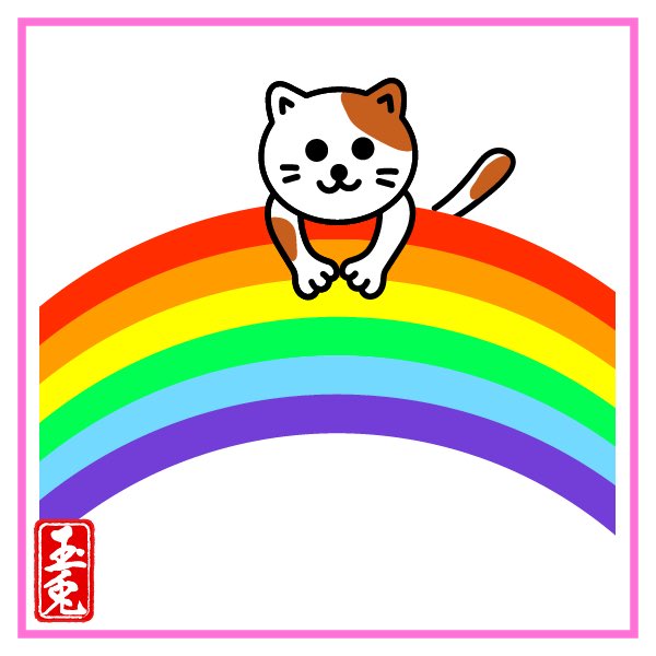 1日1イラスト53/100 7月16日はナナイロで 虹の日なんだって あっ 1色足りない🫢 #虹 #虹の日 #イラスト #猫 #ぶらさがりにゃんこ #rainbow #illustration #cat #hangingcat