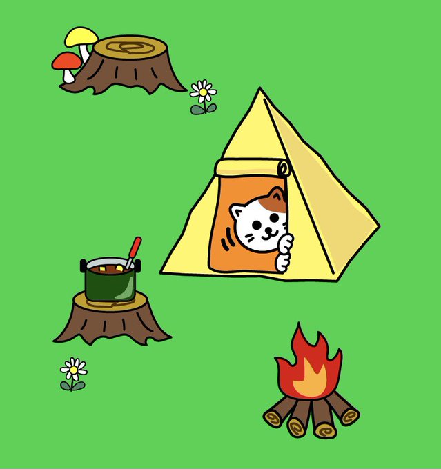 1日1イラスト94/100 おはにゃん キャンプに来たよ にゃんこさんの LINE着せかえ販売してます✨ store.line.me/themeshop/auth… #猫 #ぶらさがりにゃんこ #キャンプ #イラスト #cat #camp #illustration