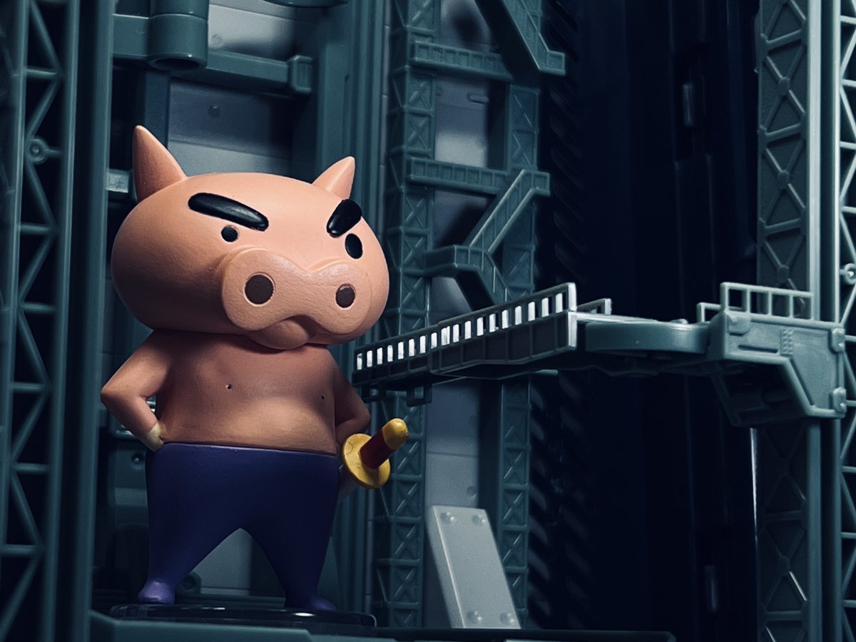 #夜のフィギュア撮影会 お題「この3年間でのお気に入りの1枚」 「今まで、そのコンピューターに侵入できたウイルスはいない。しかし…今、伝説が生まれようとしていた!」 3周年おめでとうございます! #ぶりぶりざえもん #クレヨンしんちゃん #Kin_Photo