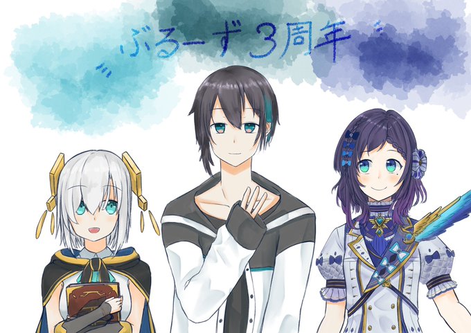 ぶるーず3周年おめでとうございます。 最後の配信ありがとうございました。 これからもずっと3人でぶるーず!!泣 #ぶるーずをすこれ #ぶるーず3周年 #灰画 #マル描いてちょんっ #ういはぁーと #黛灰を笑顔で送り出すタグ