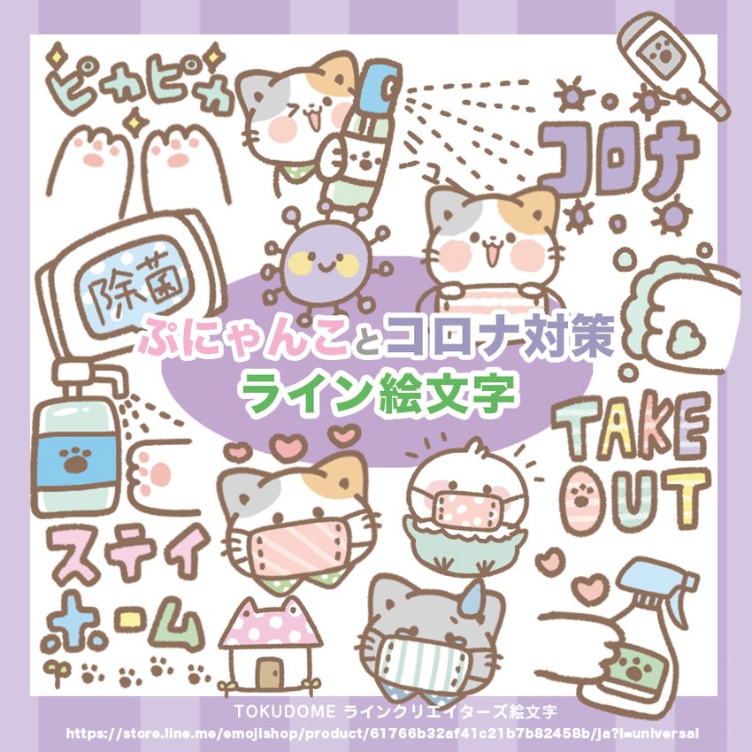 お知らせ コロナ対策LINE絵文字を販売しましたー! よろしくお願いします🥰 store.line.me/emojishop/prod… #イラスト好きと繋がりたい #illustration #ネコ絵 #LINE #LINE絵文字 #絵文字 #ぷにぷにぷにゃんこ