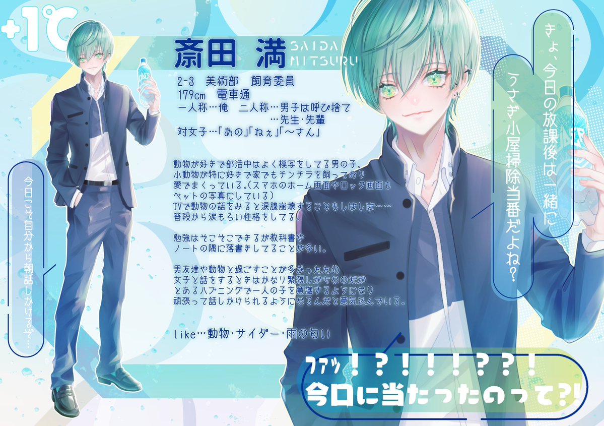 +1℃の春を君と。【@plasone_TL】 動物が大好きでこれから青春を頑張る男の子です。 よろしくお願い致しますー!! 事前に将来的恋仲関係をいただいております🥤🍒 #ぷらすいちど_CS #ぷらすいちど_生徒 #ぷらすいちど_2年3組 #ぷらすいちど_美術部