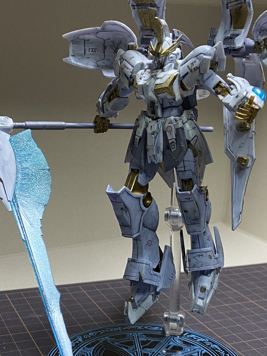 ガンダムリヴランスヘブン バトルダメージバージョン完成!! フレームの偽金を全部ガンダムゴールドで塗り、いつもの手法で傷をつけたりして完成しました! 3枚目はバエルを意識してるポーズ… #ガンプラの画像貼るとRTされると聞いて #ガンプラ #ガンプラ好きと繋がりたい #ぷらばん さん
