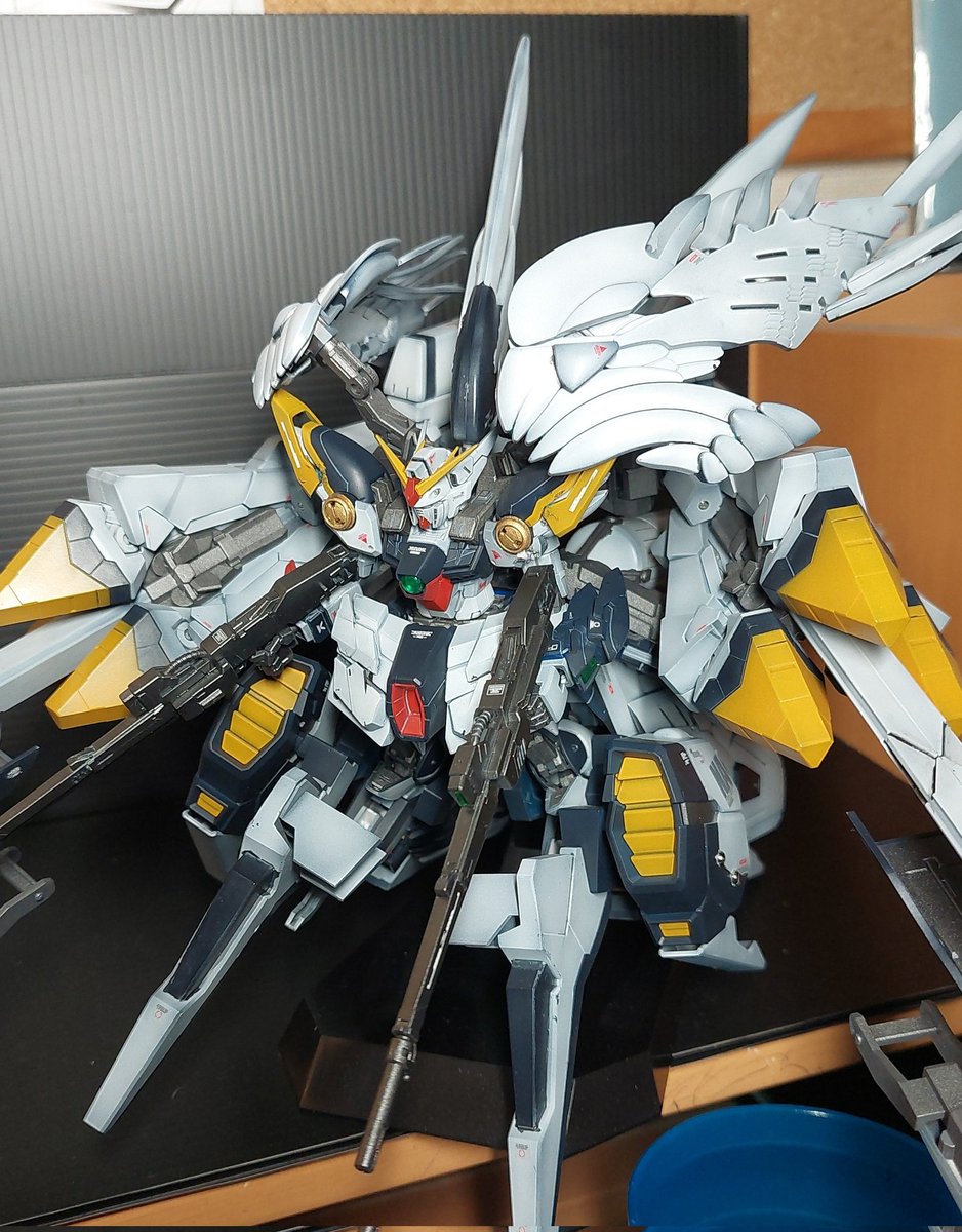 完成です。 RX-97W十 ウイングガンダムダブルクロス ぷらばんさん丸パクリの超大作! 二ヶ月賭けて三つのガンプラの初合体に挑戦。 重塗装仕上げも、がんばった甲斐があった!! #ガンプラ #ガンプラ好きと繋がりたい #ぷらばん #ガンプラの画像を貼るとRTされると聞いて