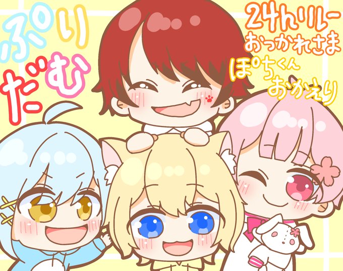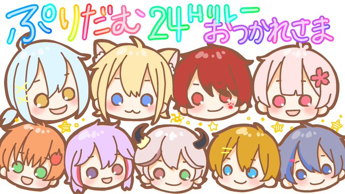 24時間お疲れ様でした! 一緒に駆け抜けたよ!いっぱい笑ったよ! そしてなにより、ぽちくんおかえりなさい みんな一緒がいいね♡ #ぷりだむ24時間リレー生放送 #ぷりだぁと #そあらーと #ぽちっとあーと #あーるんのいらしゅと #なぴくちゃー