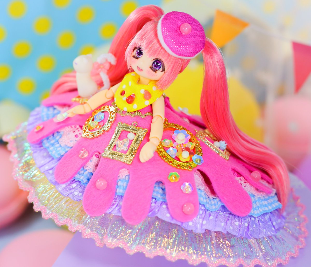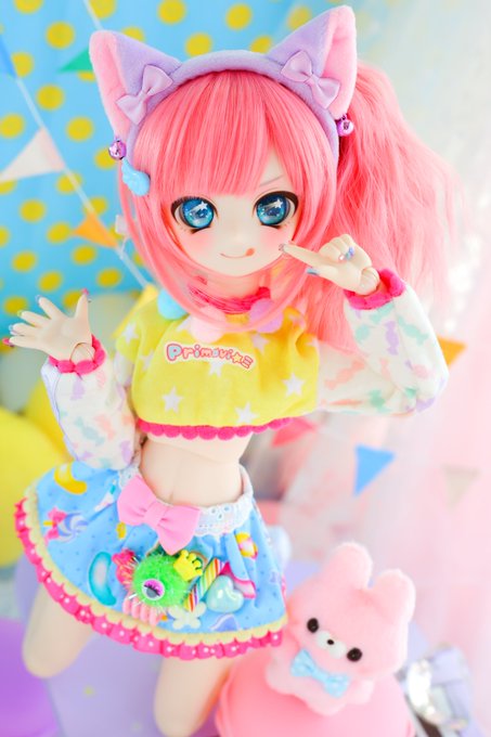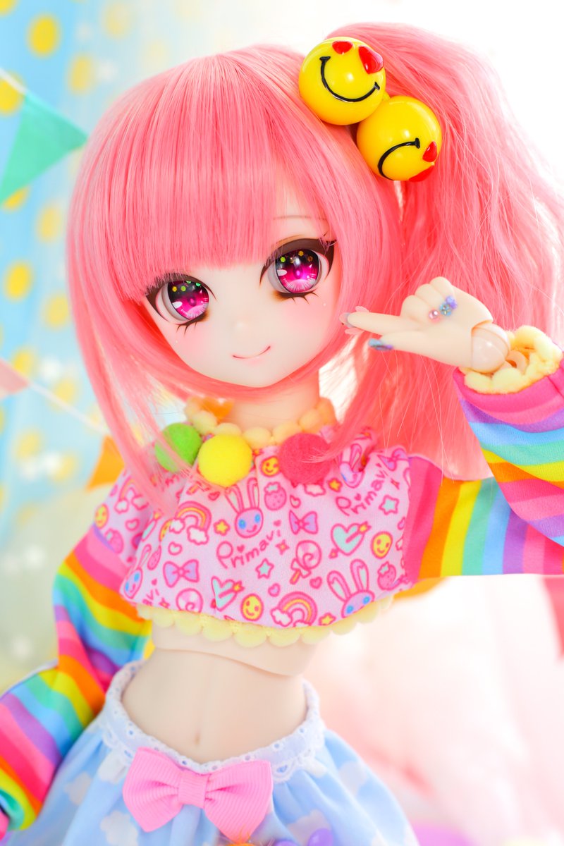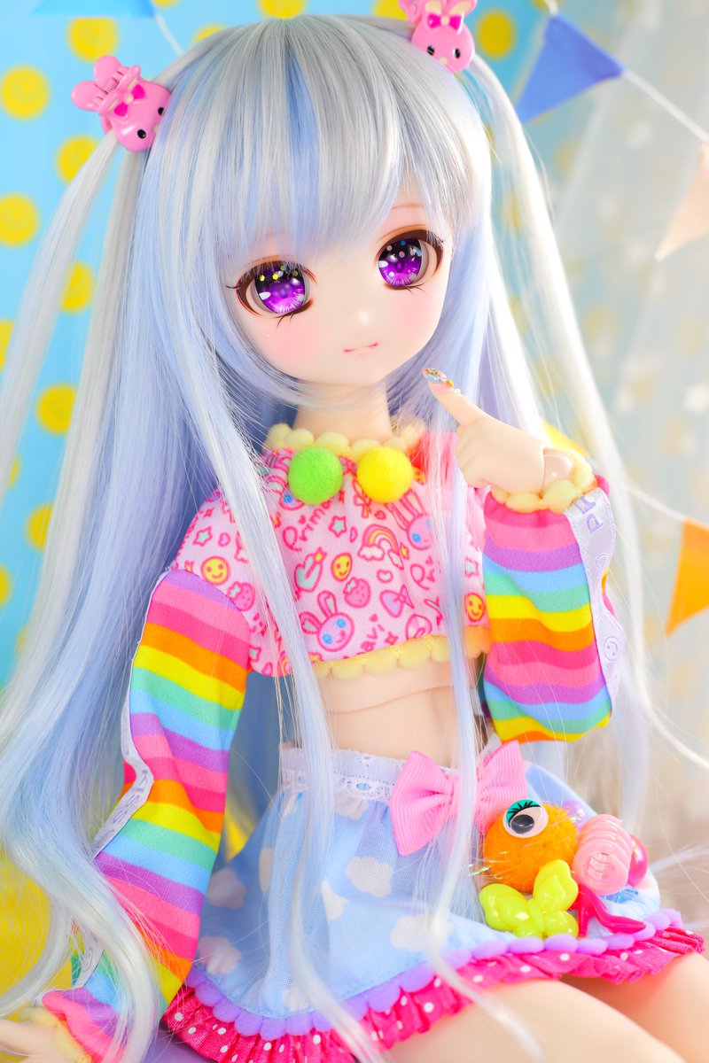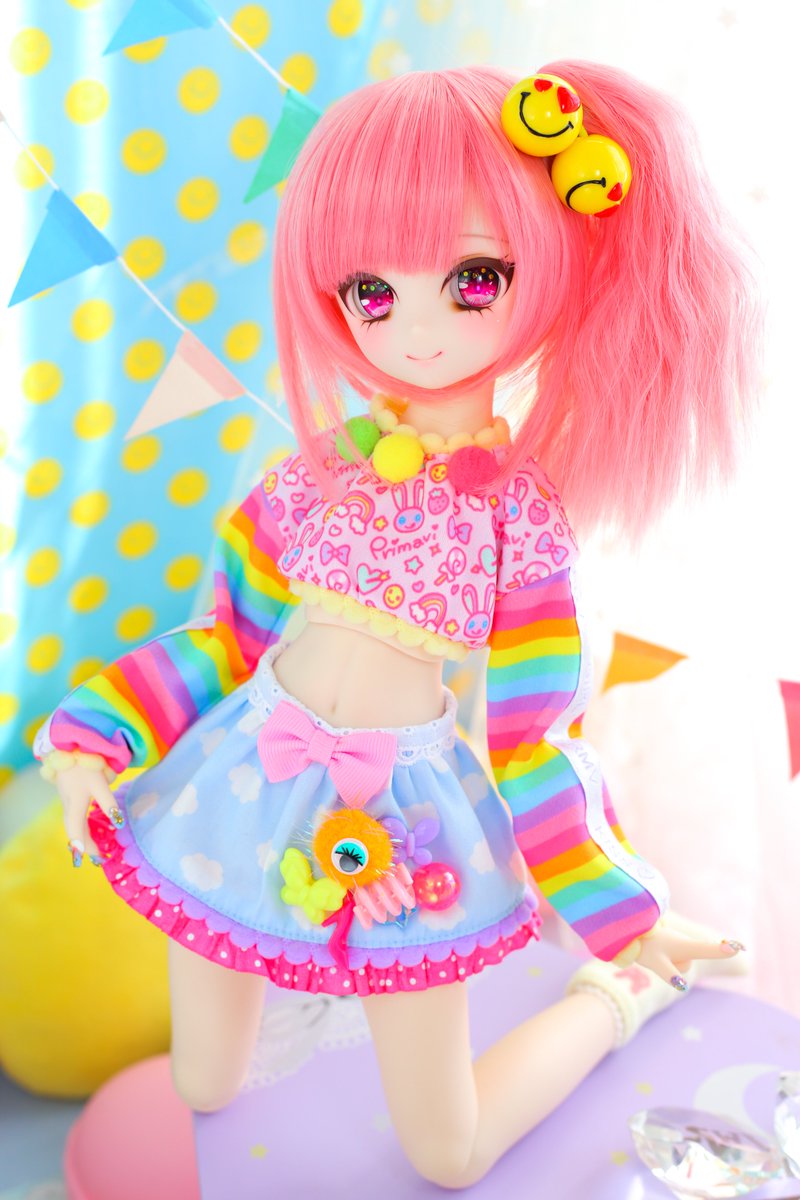12/18東京ドルパに持っていく 🌈DDH-27ヘッド 🌈MDDサイズ ポンポンレインボー 小さい八重歯があります🐱💕 #ぷりまびっこ #ぷりまび服 #ドルパ48 #ドルパ_ディーラー #insomnia_wig