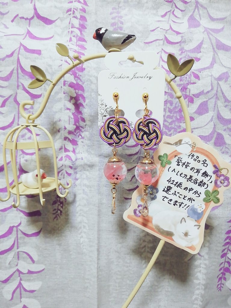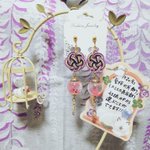 【イヤリングコス捏造】 紡ぎ屋-lukka-(@tsumugiya_tw)様 花弁を閉じ込めた硝子玉と水引の美しい調和が魅力的です! 貴方は誰を選びますか? #コスプレ #コスプレ初心者 #ハンドメイド #刀剣乱舞イメージイヤリング #ハンドメイドイヤリング #へし切長谷部コスプレ #刀剣乱舞コスプレ