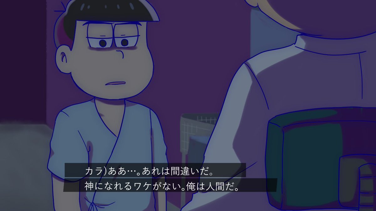 #へそウォストーリーの一場面を絵で描いてみた #100日間松描く猛者たち 70日目 絵じゃなくて漫画だけど。 いや本当『閉鎖病棟』のここはおそ松兄さんが最もかっこよかったシーンの一つとして歴史に刻まれていいと思う。(極論)