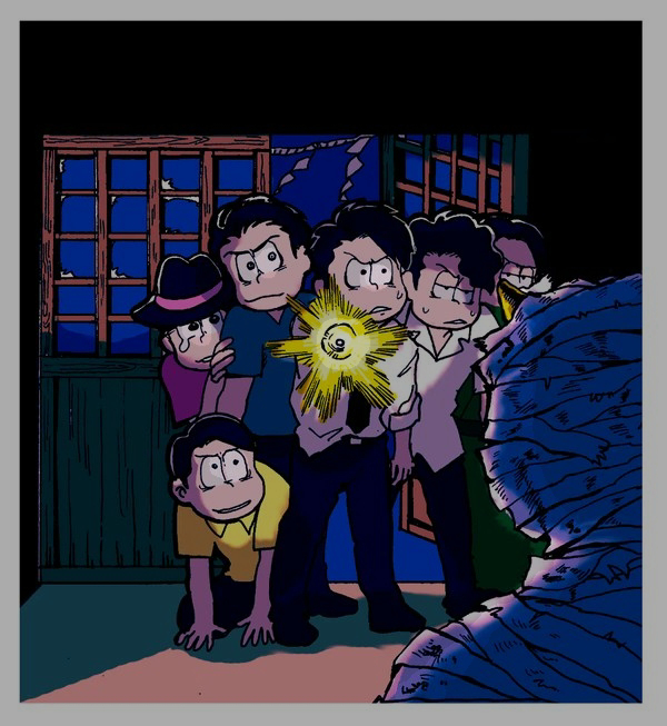 #へそウォストーリーの一場面を絵で描いてみた イベントではなくこづかいupストーリーなのですが、五男のフリをした長男に驚かされたいちまっちゃんの反応が可愛すぎるのです。この直前の数字ちゃんの概念会話も最高。「16時にいるのって、ほんとに今のボクなのかな…」から始まる15時の会話。