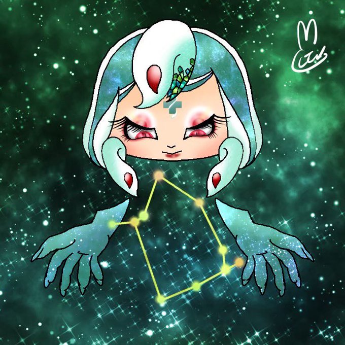 唐突な 【⛎ Ophiuchus へびつかい座】過去絵 こちらの星座図は へび座(頭)・へび座(尾)を含まないVer. 現在再掲中の星座シリーズは物販もしているため、赤十字ではなく緑&蛇十字です。 #ゴールデンウィークSNS展覧会2023 #みんなで楽しむTwitter展覧会 #へびつかい座 #イラスト