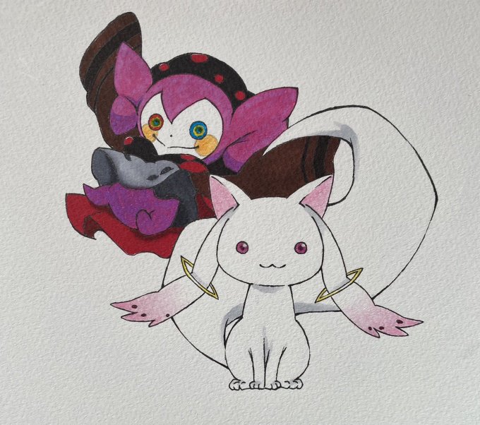 次女(19)の模写。私仕事で描いてる時間ない💦 #絵描きさんと繋がりたい #イラスト好きな人と繋がりたい #美術ネットワーク #みんなで楽しむTwitter展覧会 #まどかマギカ #キュウべぇ #べべ