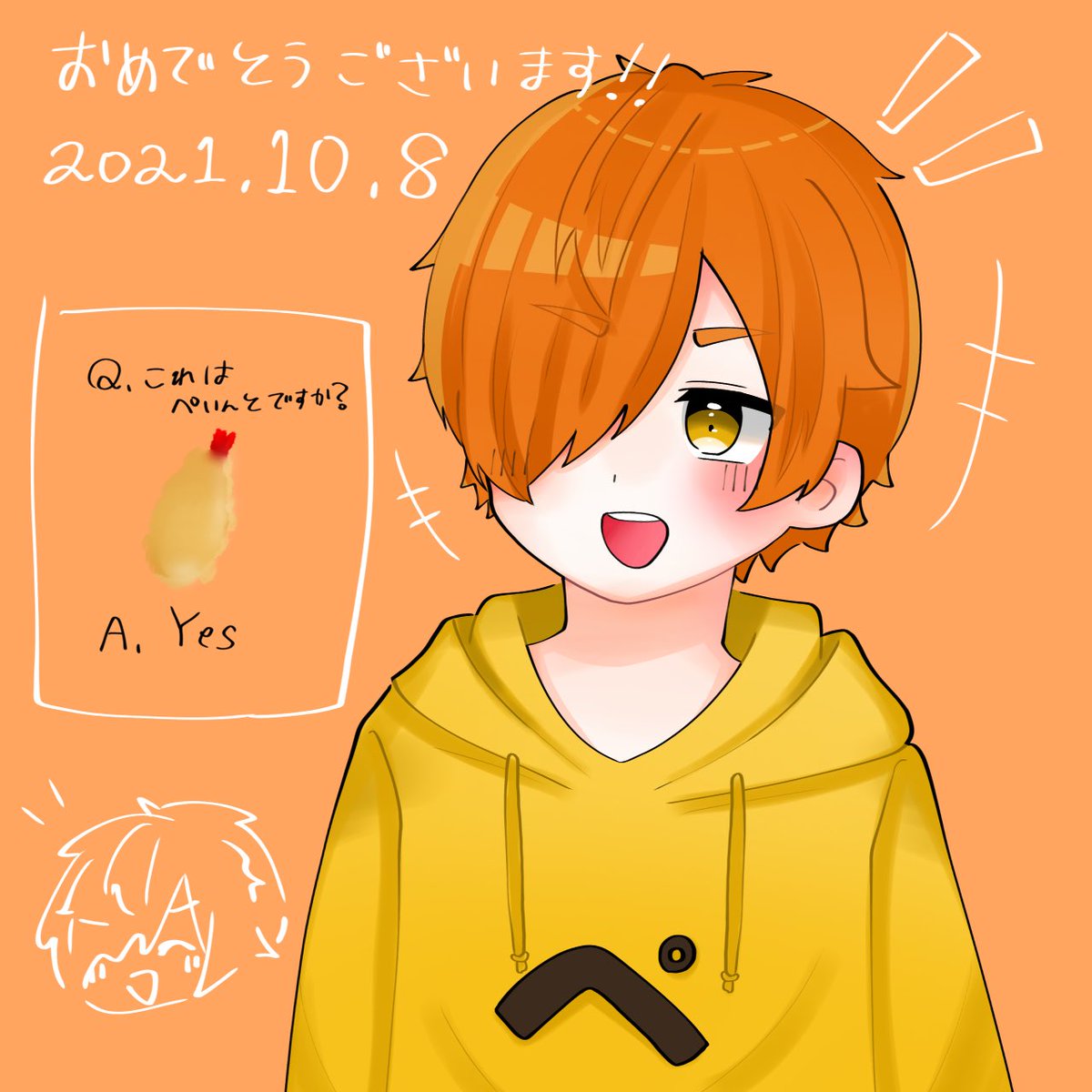 らくがき程度に2枚目を描きました🙇♀️ ✨*.+゚✨*.+゚✨*.+゚✨*.+゚✨*. ℋappy ℬirthday💐 🍤。。。。・✨・。。。。・✨・。。。。🍤 ✨幸せな一年になりますように🙈💭 #ぺいんとさんの誕生日会2022 #ぺんちゃんの絵本 #ぺいんと誕生祭