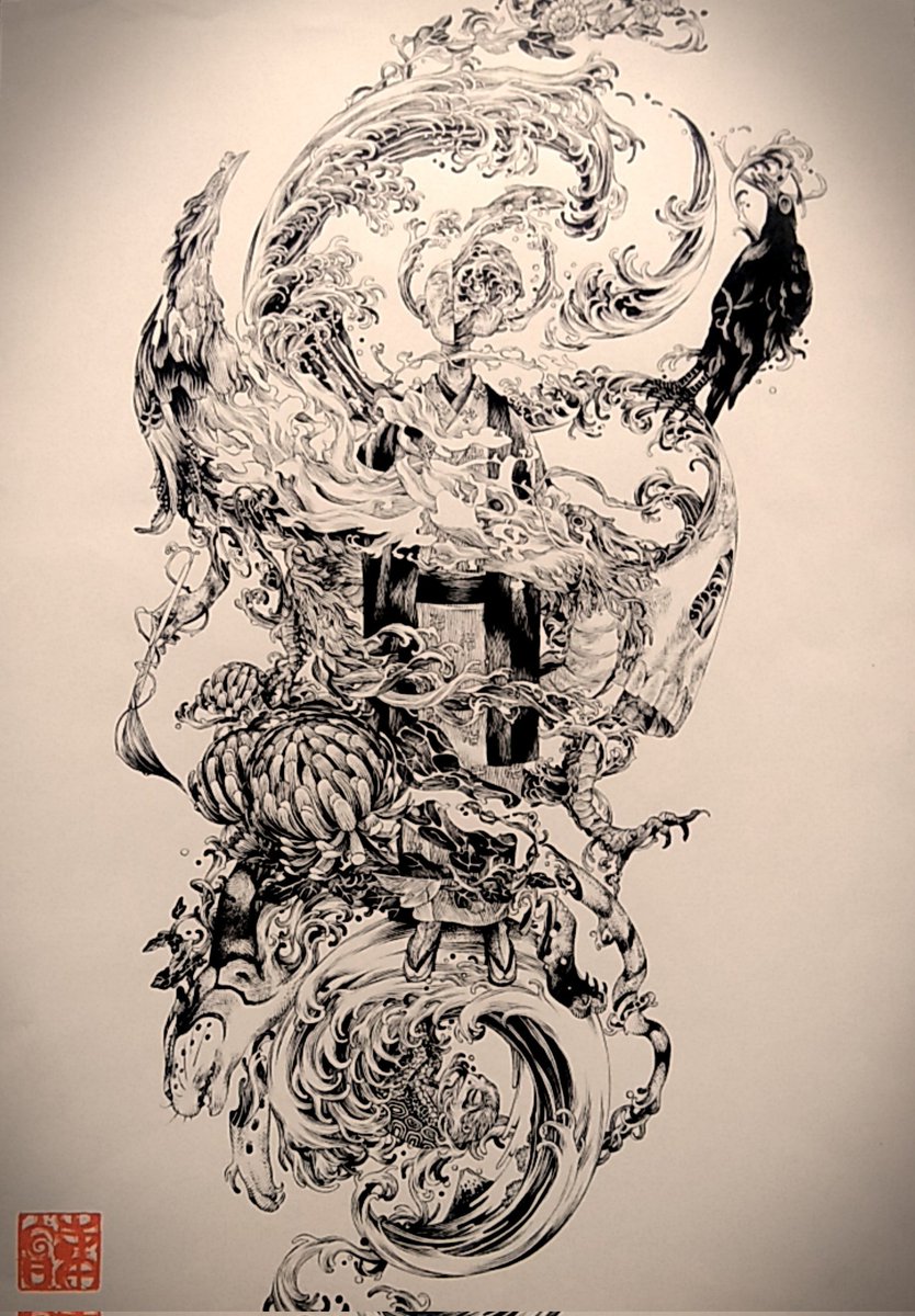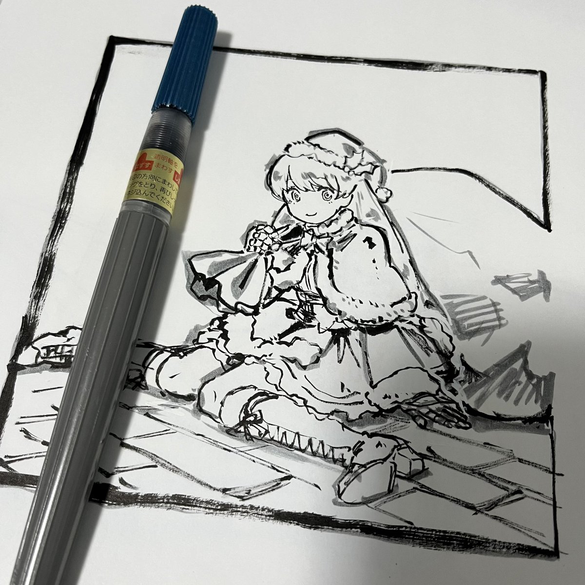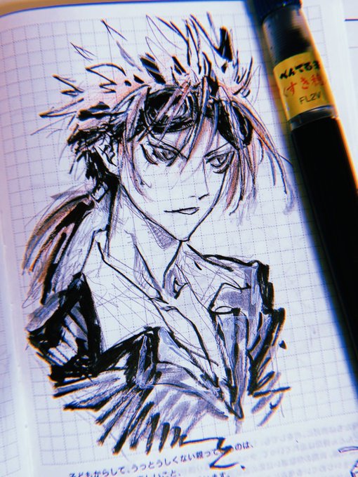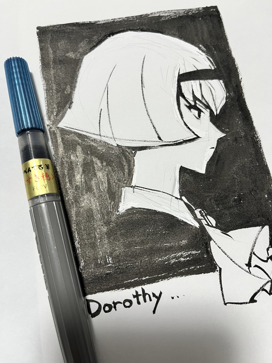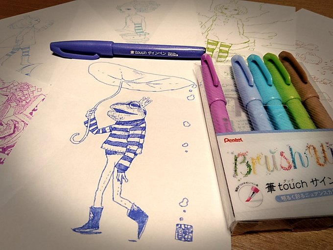 #アナログ絵で魅せてみよ 主線は #ぺんてる筆 の中字。色が塗ってあるところは #コピック スケッチ。原画が存在することが、アナログ絵の強味。 @pentel_pepe @pentel_lulu