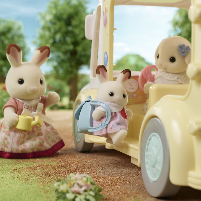 「今日は #ほいくえん でなにをするの?」 「きょうは、おはなのタネをまくんです!」 はりきって #ほいくえんバス に乗りこむショコラウサギのクレム🚌 タネまきをとっても楽しみにしているみたい🌱 楽しいタネまきになるといいですね♪ #シルバニアファミリー #シルバニア #シルバニア赤ちゃん