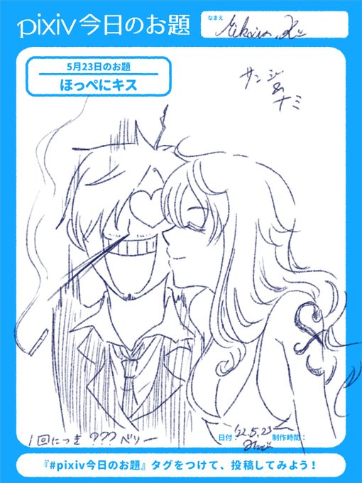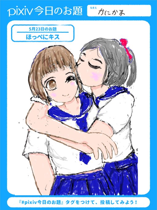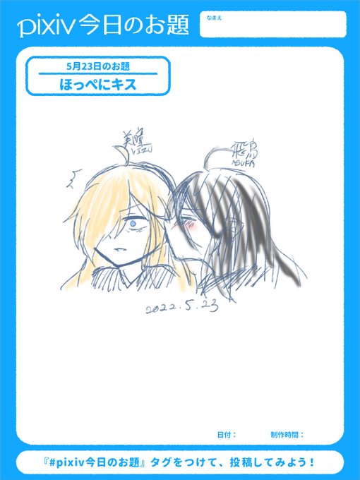 描いた事ないわ〜。顔の重ね方とか 肩の当たり方、唇のカタチ。 意外にムズイね。 #ほっぺにキス #pixiv今日のお題 #sensei #リドローOK #絵描きさんと繋がりたい sketch.pixiv.net/items/13473118…