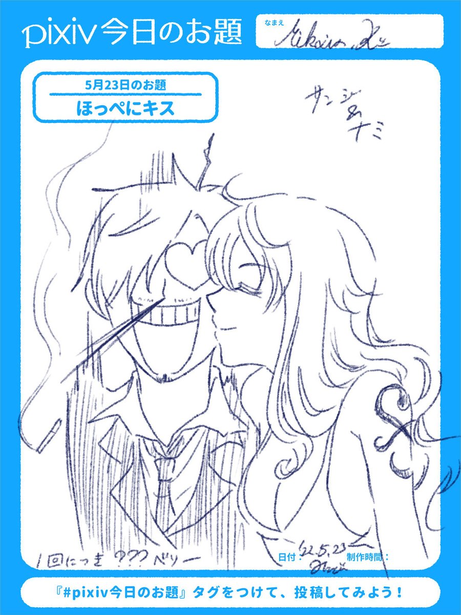 #Sketchドロー #ほっぺにキス #pixiv今日のお題 #sensei サンジとナミ(・ヮ・) あとでナミから請求書が届くまでがワンセット sketch.pixiv.net/items/16887810…