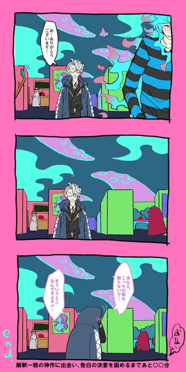 【1/2】Webオンリーお疲れ様でした!たくさんのイデアズ作品に囲まれて本当に幸せな1日でした。展示していた漫画を再掲させていただきます。ポイピクリアクション等ありがとうございました☺️(続きはリプ→) #ほねたこ2リプレイ