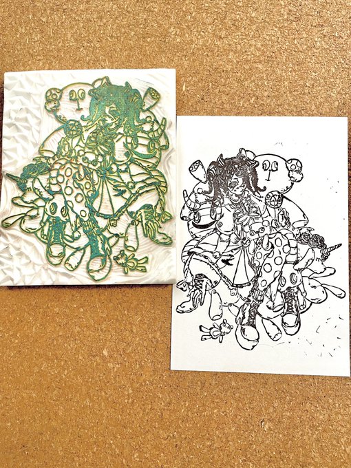 おはようございます😃 完成です。 もっとカラフルなインクで楽しげに とも思ったのですが、シンプルに。 あとで色を塗ってみようかなー😄 彫ってる人 : Tomiton 描いてる人 : 娘ちゃん(@usataro13) #消しゴムはんこ #ほるナビ #イラスト好きさんと繋がりたい