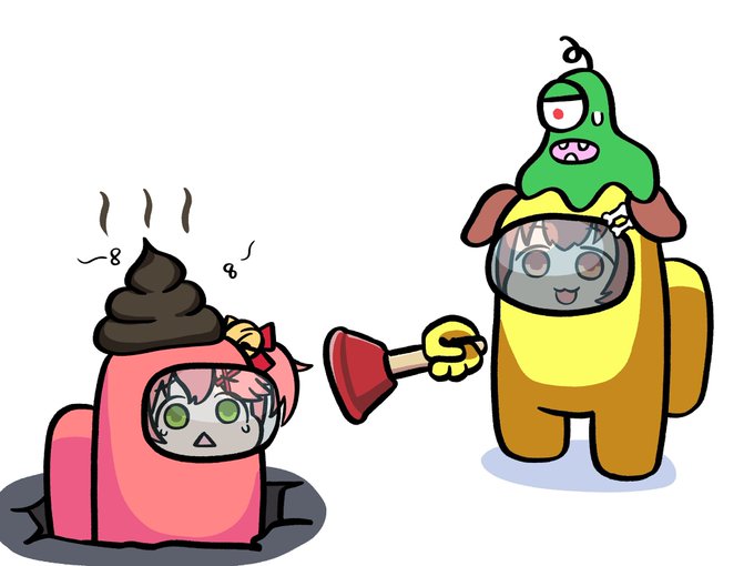 00:45:30頃 🐶ね、きたなーい💦 🌸うんちのこと汚いって言いたいわけ? 🐶ううん。みこみこが。 あ、違う。うんちが💦 #ほろ酔いAmongUs #できたてころね #miko_Art
