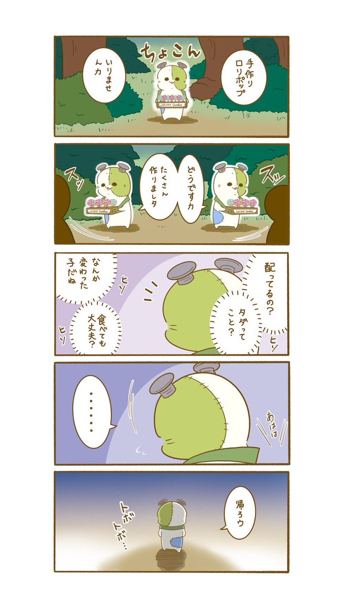 ひとりじゃないよ。 (型はオクトが作りました。オクトは目からレーザーが出るので型作りが得意です) #いっしょにがんばろう #ぼくたちポンコツ3人組 #漫画が読めるハッシュタグ #マンガが読めるハッシュタグ #四コマ漫画 #創作 #みんなで楽しむTwitter展覧会