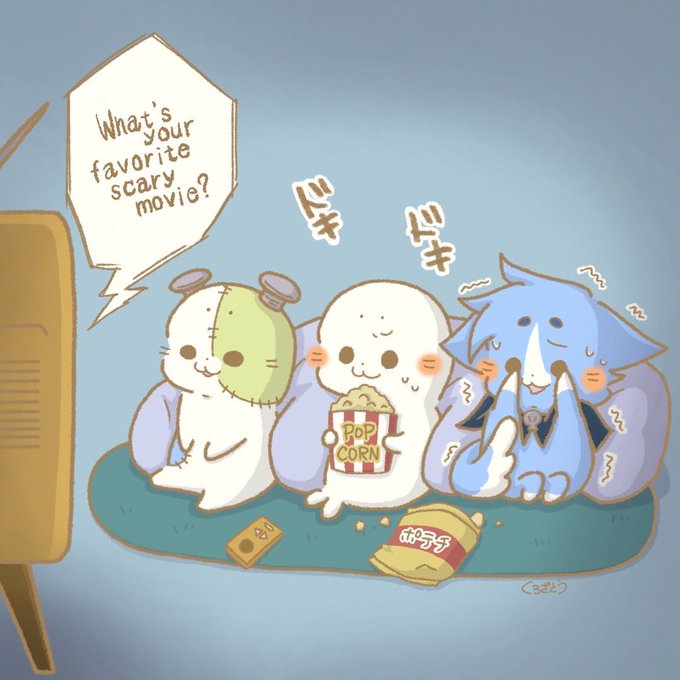 ホラー映画鑑賞会🎬 自分はスラッシャーからスプr(規制)までなんでもいけます😂 皆さんのお気に入りのホラー映画はなんですか? #ぼくたちポンコツ3人組 #映画 #movie #horror #スクリーム #Scream #イラスト #絵柄が好みって人がいたらいいなぁ