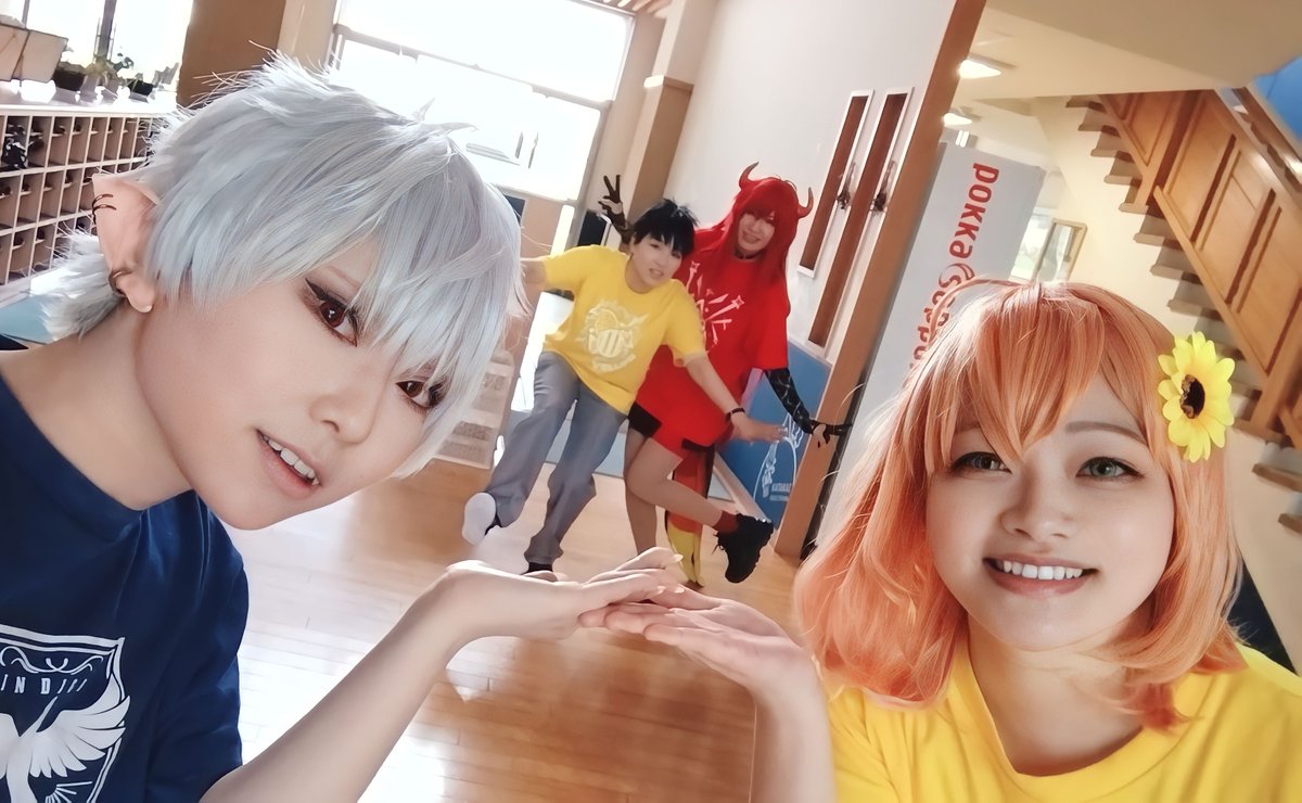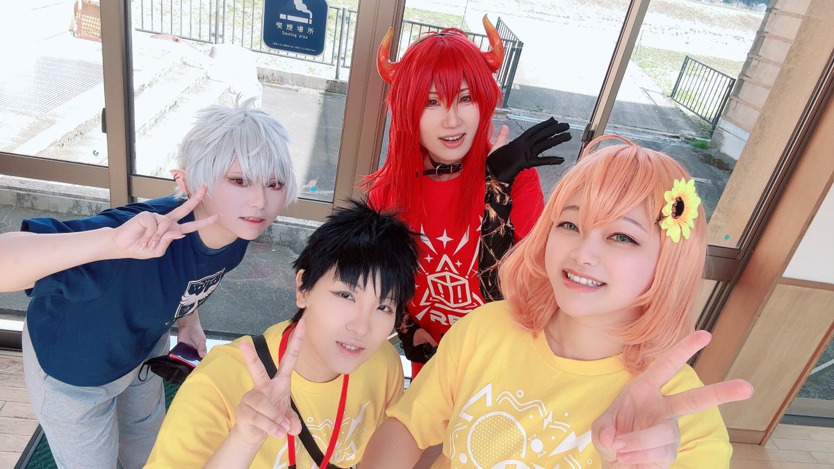 【⚠︎cosplay】 うちら仲良し家族〜!🥰✨ 🔥:壱子さん/@borboros 🎲:八海あがりさん/@_shoot_M 🌻:羽亜子 🖥:きさとるさん/@kisausa08 #ぼくらのニジハル0321