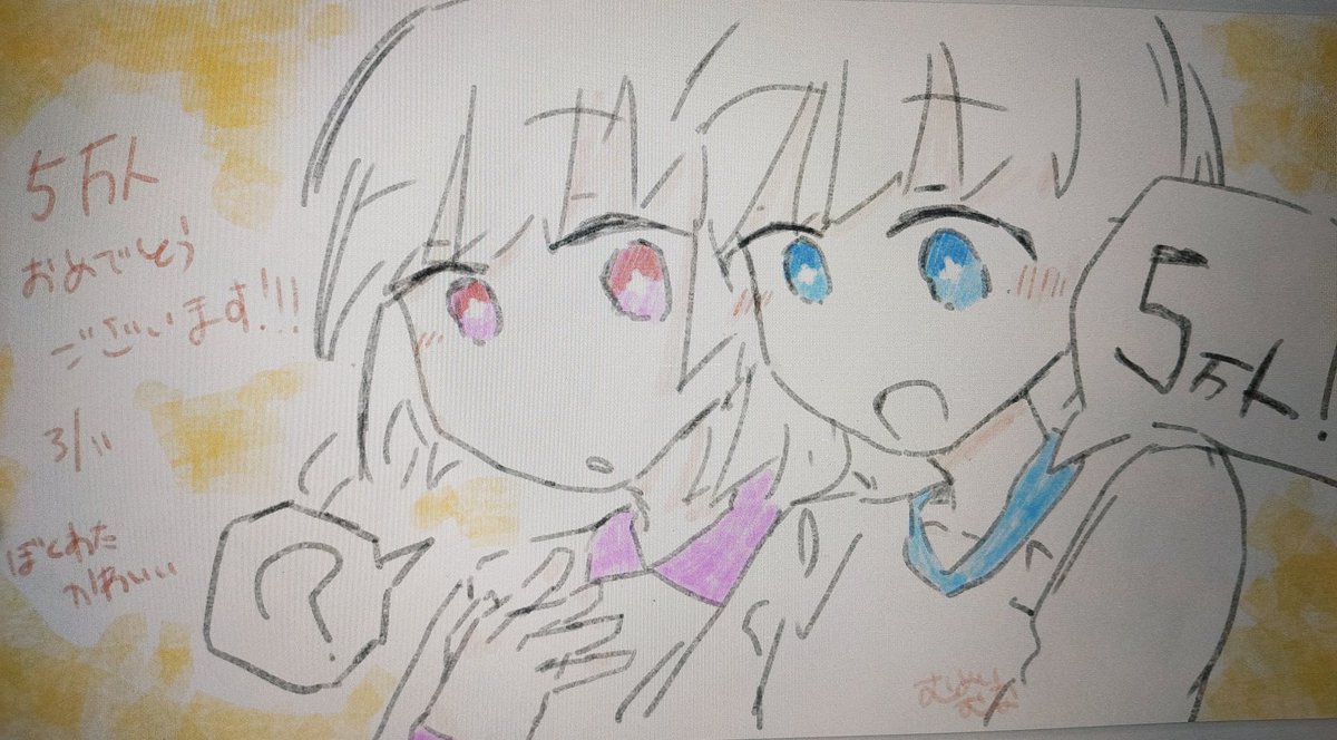 ぼくわたチャンネルさん5万人記念配信があるんですって!すごいなー! youtube.com/live/o0qo1wmgo… 記念イラストおめでとうの気持ちを込めてかきました! 草津温泉のある群馬県吾妻郡の人口と一緒くらいですって!すごいなー!おめでとうございます! #ぼくわた5万人イラスト