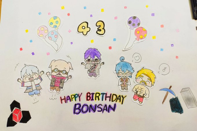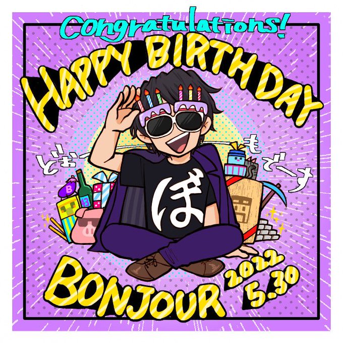 #ぼんじゅうる誕生祭 ぼんさんお誕生日おめでとうございます!🎂(n回目) 人柄話し方時折見せる子供心というか柔軟性というか言葉にしにくいですが、どれも全てとてもイイ!です卍 この年もハッピーなものにしてください🍆 (過去絵)はっぴーぼんじゅうる