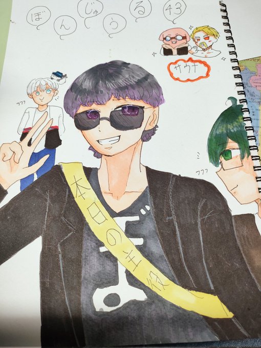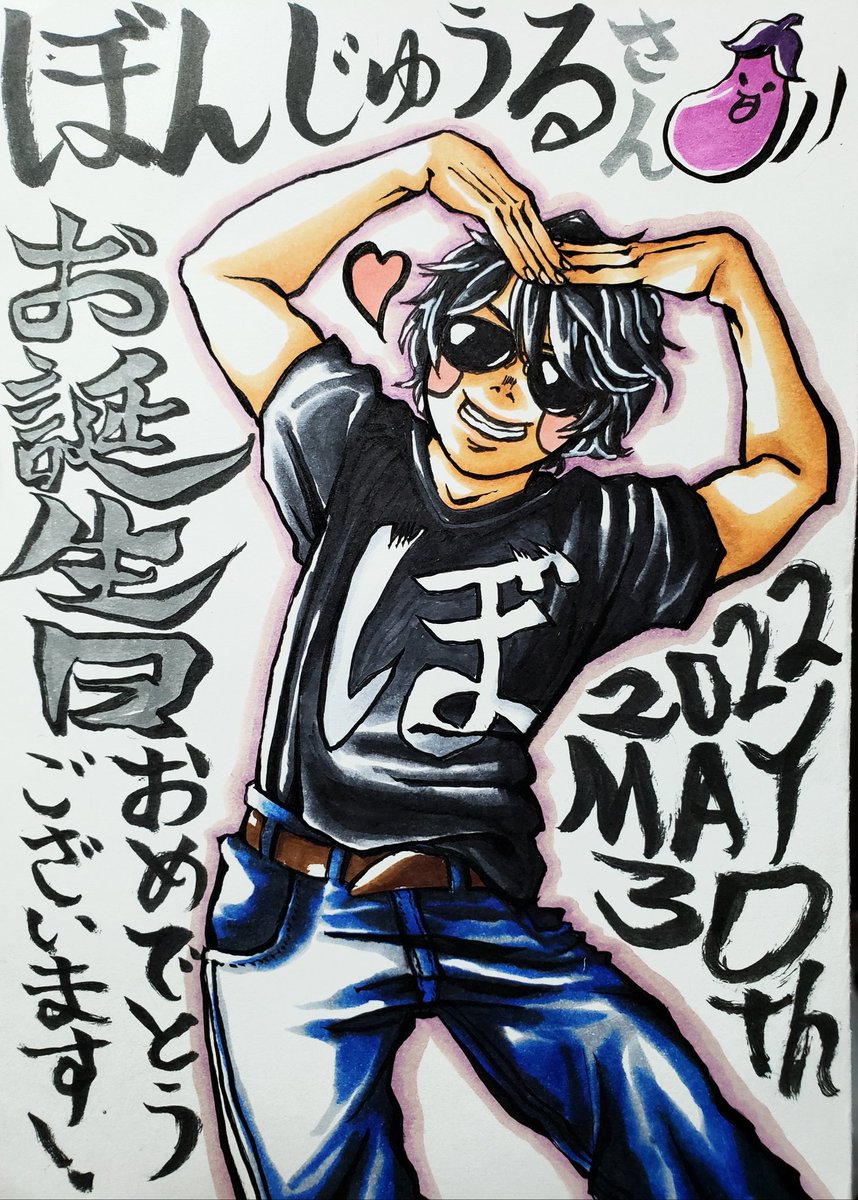 ぼんじゅうる🍆さん ✨お誕生日おめでとうございます✨ ぼんじゅうるさんみたいに、幾つになってもガチで遊べる大人になりたいです‼️ あと…ダンス可愛かったです🤭♥️← よい歳になります様にヽ(*´∀`*)ノ✨ #ぼんじゅうる誕生祭 #アナログ絵 #イラスト