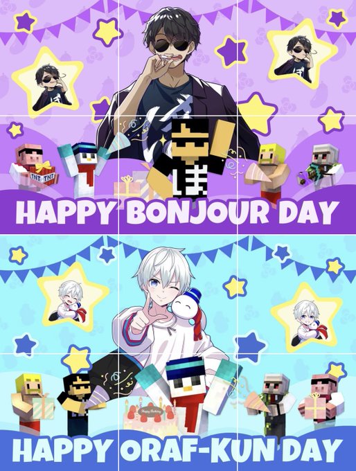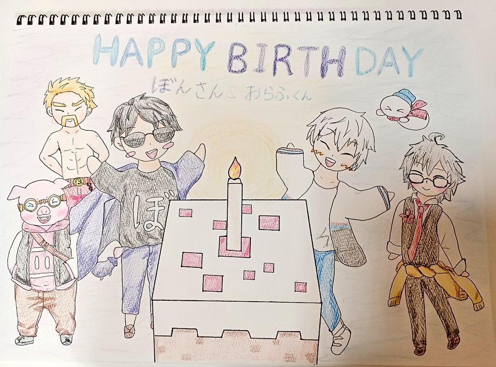 ぼんさん&おらふくんお誕生日おめでとうございます🎂🎁🎊🎊✨ いつも楽しませてくれてありがとうございます!2人が破茶滅茶に楽しい一年になりますように✨ #ドズル社アート #ぼんじゅうる誕生祭 #ぼんさん何してんすか #おらふくん誕生祭 #見るかもわからん (おらふくん遅くなってごめんね…💦)