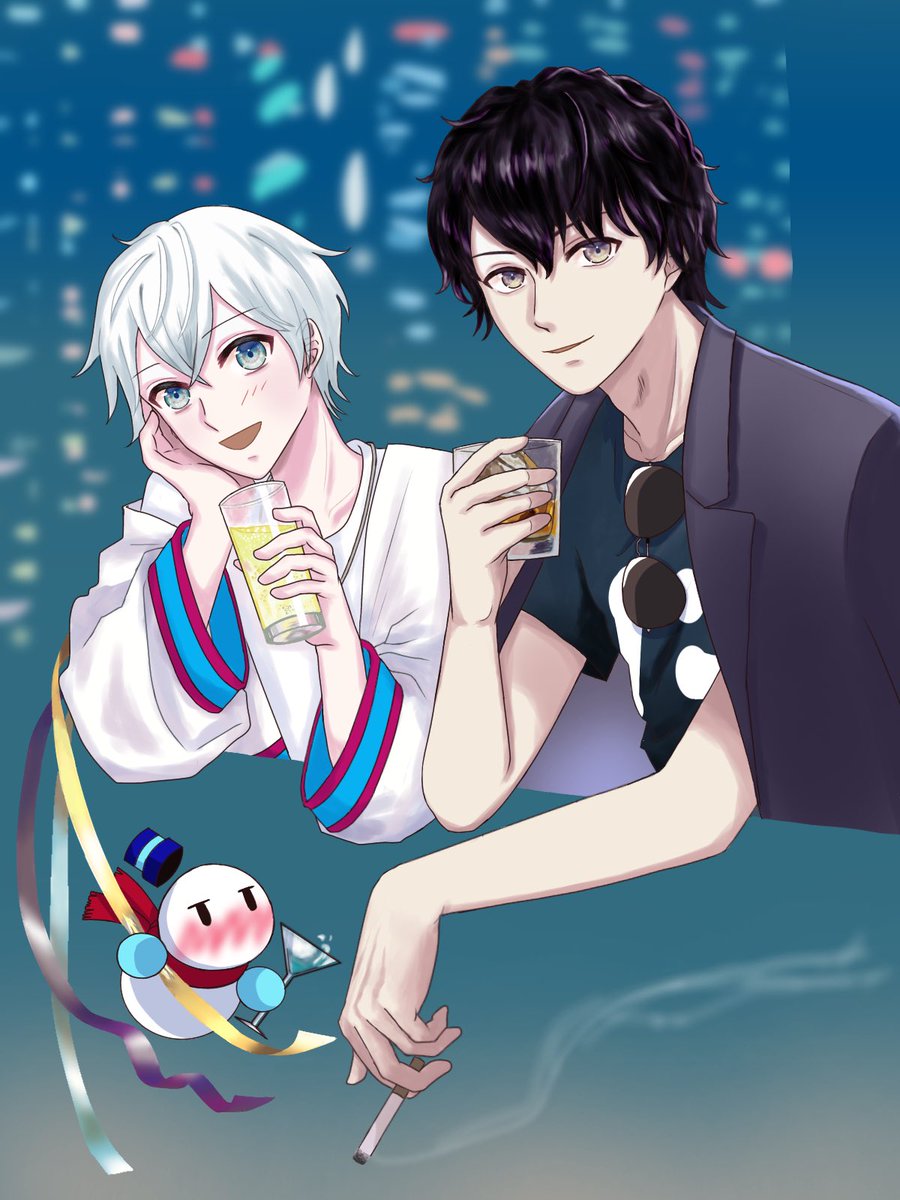 祭りのあと ~2人でしっぽりベランダ飲み~ 「お祭り、楽しかったですね♪」 「‥‥仲間って‥いいよな」 「ほんとサイコー!っすね!」 ということで‥ お疲れ様でございました #ぼんさん何してんすか #見るかもわからん #ドズル社アート #ぼんじゅうる誕生祭 後 #おらふくん誕生祭 後