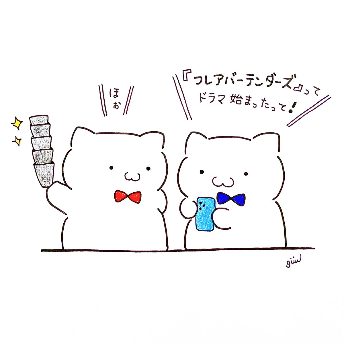 1週間お疲れ様🍇✾ by【Cafe&Barぼんぼん】 (『#フレアバーテンダーズ 』ってドラマ MBSで始まったってよ!!\( 'ω')/🍸✨) #ミスティアマティーニ #カクテル #ぼんぼん #蝶ネクタイ猫 #イラスト #catillustration