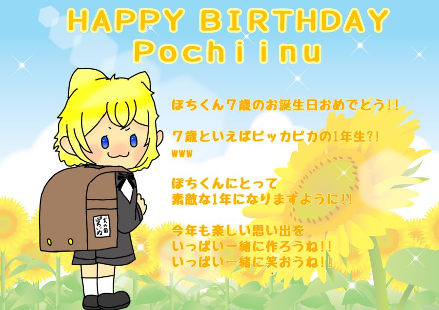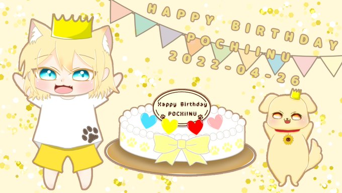 ぽちくんお誕生日おめでとうー! 色々あったし、これからもあると思うけど、リスナーさんやメンバーが支えます☺️ 生まれてきてくれてありまとう☺️✨ これからも、思い出たくさん作ろーね!💛🐶 #ぽちいぬくん誕生祭 #ぽちっとあーと #ぷりだぁと