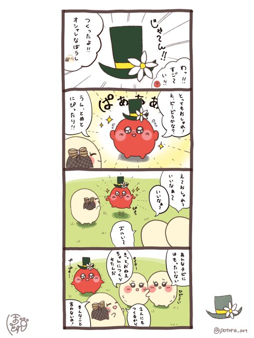 たいせつなぼうし🎩① . . . #illustration #イラスト #ゆるいイラスト #トマト #とめと #じゃがいも #ぽてこ #漫画が読めるハッシュタグ #一日一絵 #イラスト好きな人と繋がりたい #ぽとれあーと #potoreart