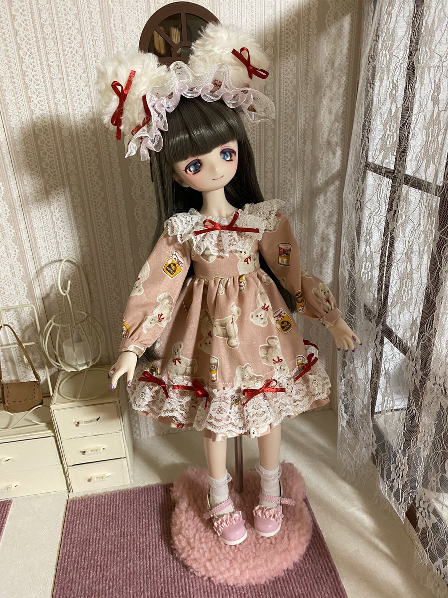 MDDが着用するとこんな感じになります✨ ドルパ46にて、 全サイズカラー合わせて合計10着の先着販売予定です🙏 SD/DDサイズはこれから製作します🙌 #ふにゃほわっ子 #ドルフィードリーム #ドルパ_ディーラー #ドルパ46 #みさんとウィッグ #ぽぽスタンド