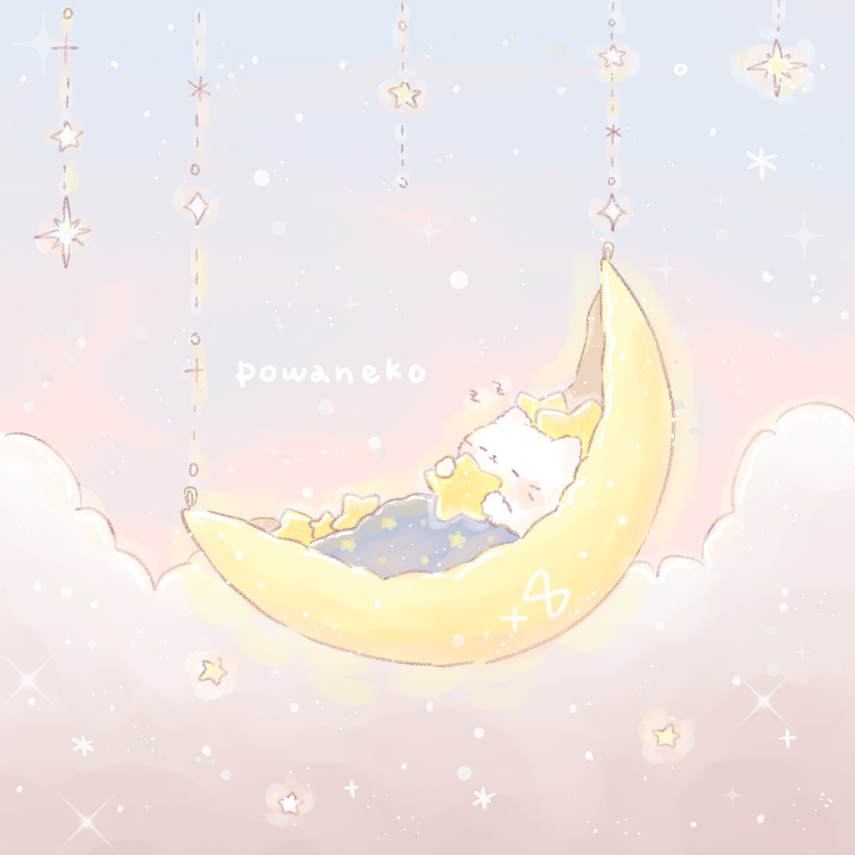 ☁️ お月様のハンモック ☽⋆·̩͙ . . #イラスト #ぽわねこ #絵描きさんと繋がりたい #猫好きさんと繋がりたい #動物イラスト #ゆるいイラスト #フォロバ100 #冬の創作クラスタフォロー祭