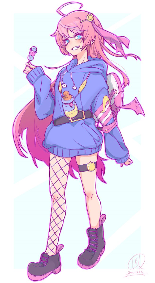 お出かけ服を新調してもらえてウキウキなミリム様がみたいです…!ミリム様がより楽しく休日にお出かけできるようにはちみつモチーフをたくさん散りばめ、ガーリーなお洋服にしました✨🎀🍯 #まおりゅうイラコン衣装
