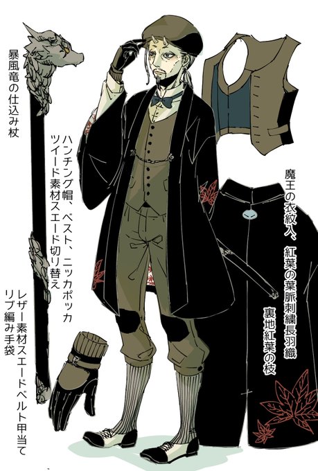 #まおりゅうイラコン衣装 ディアブロに着てほしい!オフの日コーデは探偵テイストです~まおりゅうの会話でもなかなか休日に休まないリムル様の観察が趣味の彼にはさらにリムル様の事を知れるような服装を喜んで着ると思います