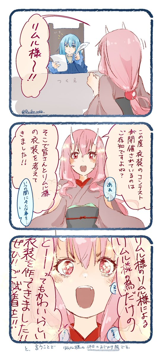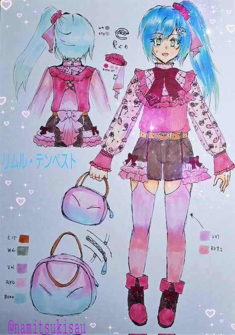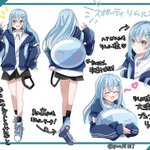 リムル様の衣装です! 現代風だけどまおりゅうらしさのある衣装がいいな〜あとはやっぱり下のノースリーブ&ハイネック&スライムは必須で!!👍✨ 大役任されてシュナちゃんノリノリなんだろうな〜🥰って言うおまけ付きで #まおりゅうイラコン衣装